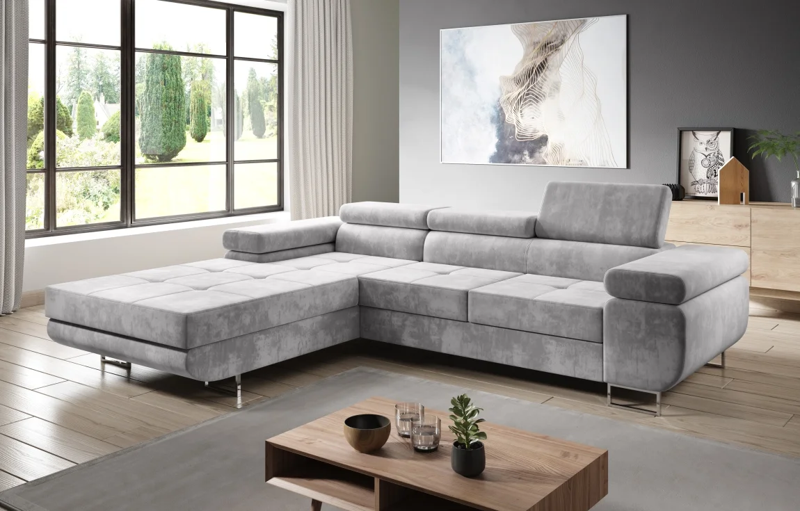 Rohová rozkládací sedačka SINGER nabízí pohodlí s praktickými funkcemi pro každodenní používání. Je určena pro levé rohové uspořádání a je k dispozici v látce Monolith 84 v odstínu světle šedá, která je odolná a snadná na údržbu.
