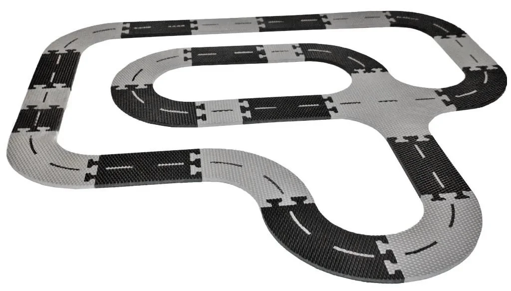Autodráha je vyrobena z kvalitního, lehkého a odolného materiálu, který je tichý, omyvatelný a vodu neabsorbuje. S rozměry 144 x 132 cm je vhodná do školních družin, herních koutků i domácího prostředí. Barevná kombinace černé a šedé si lze přizpůsobit podle vkusu. Sada obsahuje 24 dvoubarevných dílů, které jsou bezpečné a zdravotně nezávadné, vyrobené v České republice. Ideální volba pro rozvíjení představivosti a zábavy malých i větších dětí.