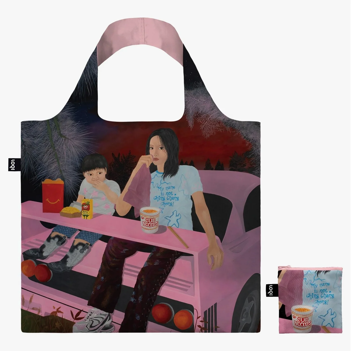 Skládací taška LOQI Immigrant Reverie od Shuaitong Zong spojuje módní výraz s odpovědným přístupem k přírodě. Lehký, ale vysoce odolný doplněk doplní každý outfit stejně snadno jako kabelka a současně přispívá k omezení plastového odpadu díky využití recyklovaného materiálu.