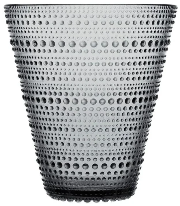Elegantní šedá váza z jemného skla, navržená finským designérem Oivou Toikkou v roce 1964, pochází z ikonické kolekce Kastehelmi od finské značky Iittala. Její jedinečný vzhled je inspirován kapkami rosy, které díky skleněným bublinám vytvářejí nádherný odlesk a hrají s každým paprskem světla.
