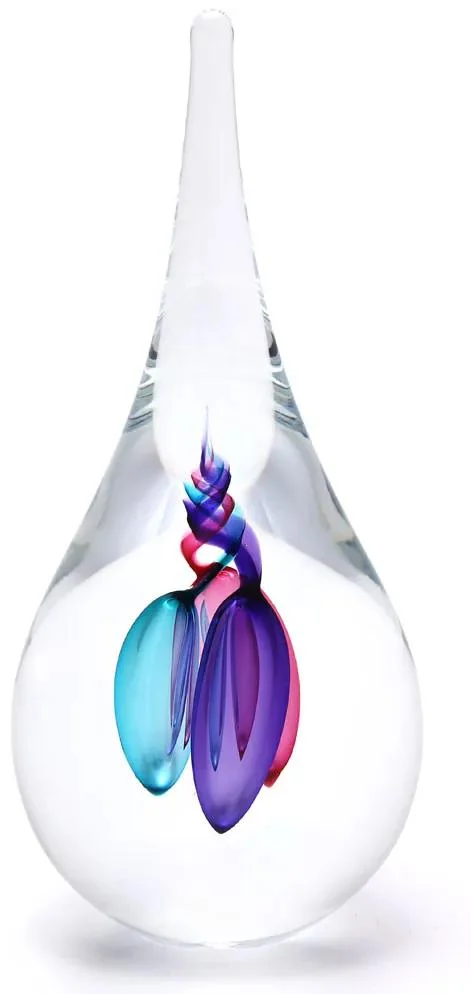 Elegantní ručně tvarované skleněné těžítko ve tvaru kapky, zdobené barevným vnitřním motivem. Vyrobeno z kvalitního českého křišťálu bez olova, každý kus je originálem s unikátním designem.