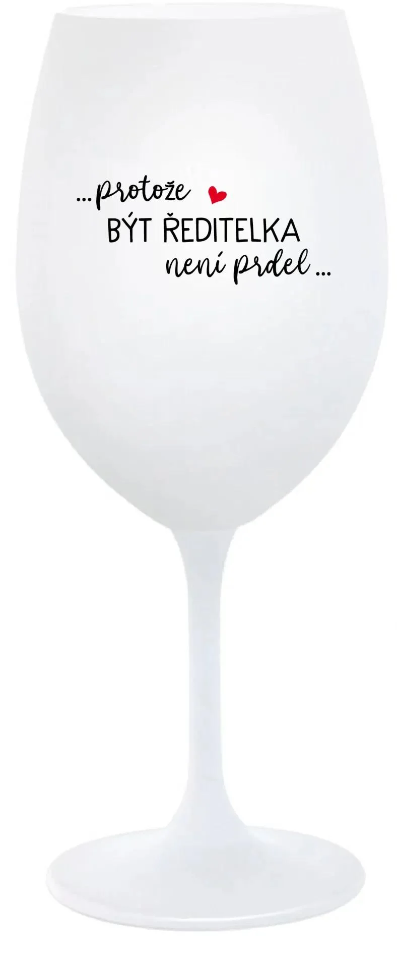 Elegantní bílá sklenice na víno s vtipným motivem „...PROTOŽE BÝT ŘEDITELKA NENÍ PRDEL...“ je ideální volbou jako originální dárek nebo pro osobní potěšení při relaxaci po náročném dni.