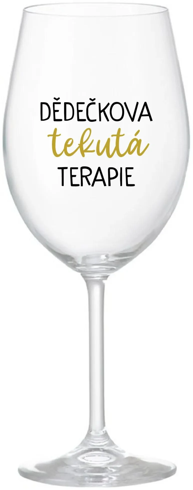 Elegantní průhledná sklenice na víno s jedinečným motivem Dědečkova terapie je ideálním dárkem pro milovníky vína i osobní relaxaci. Její stylový design navodí příjemnou atmosféru nejen při zvláštních příležitostech, ale i při obyčejných večerech, kdy si chcete dopřát sklenku kvalitního vína.