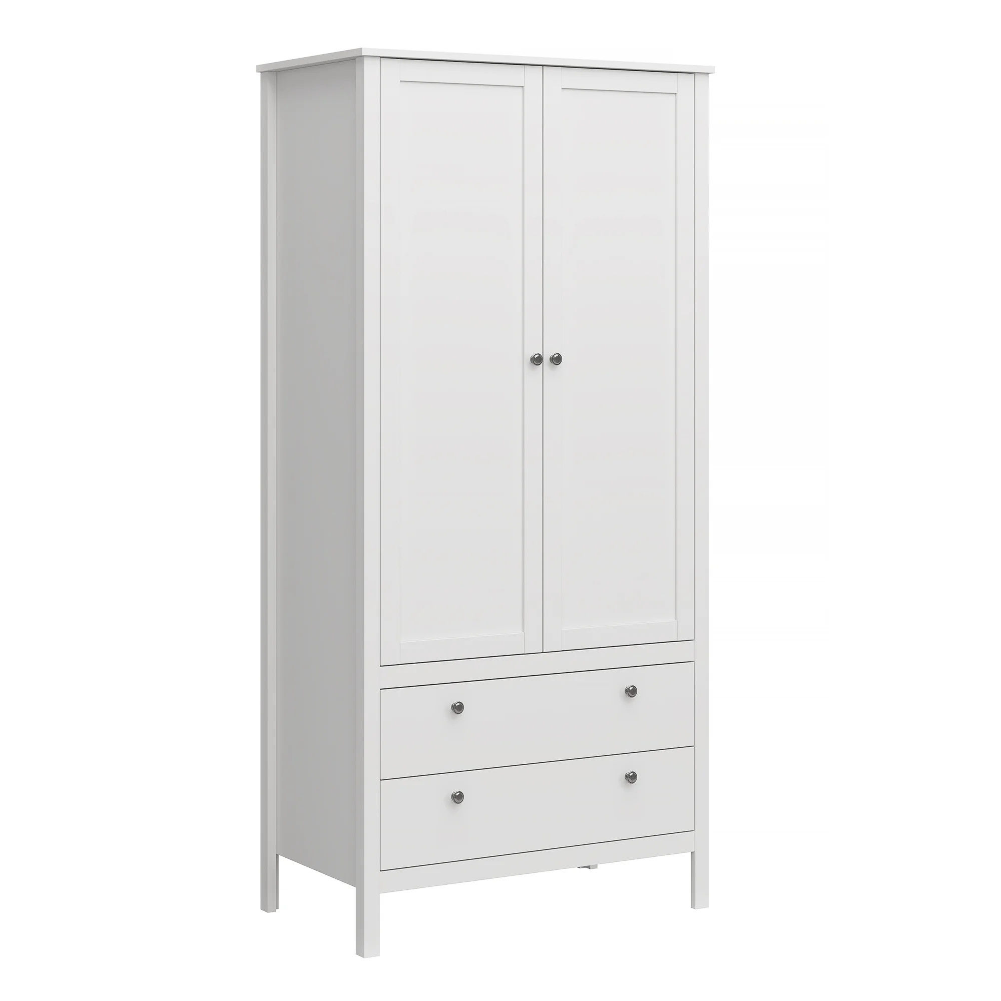 Skříň 2D2S v čistě bílé barvě je praktickým řešením pro organizaci oděvů a doplňků. Je koncipována jako dvoudveřový kus se samostatnou vnitřní částí, ve které je věšáková tyč, a s dvěma šuplíky pro drobnosti.