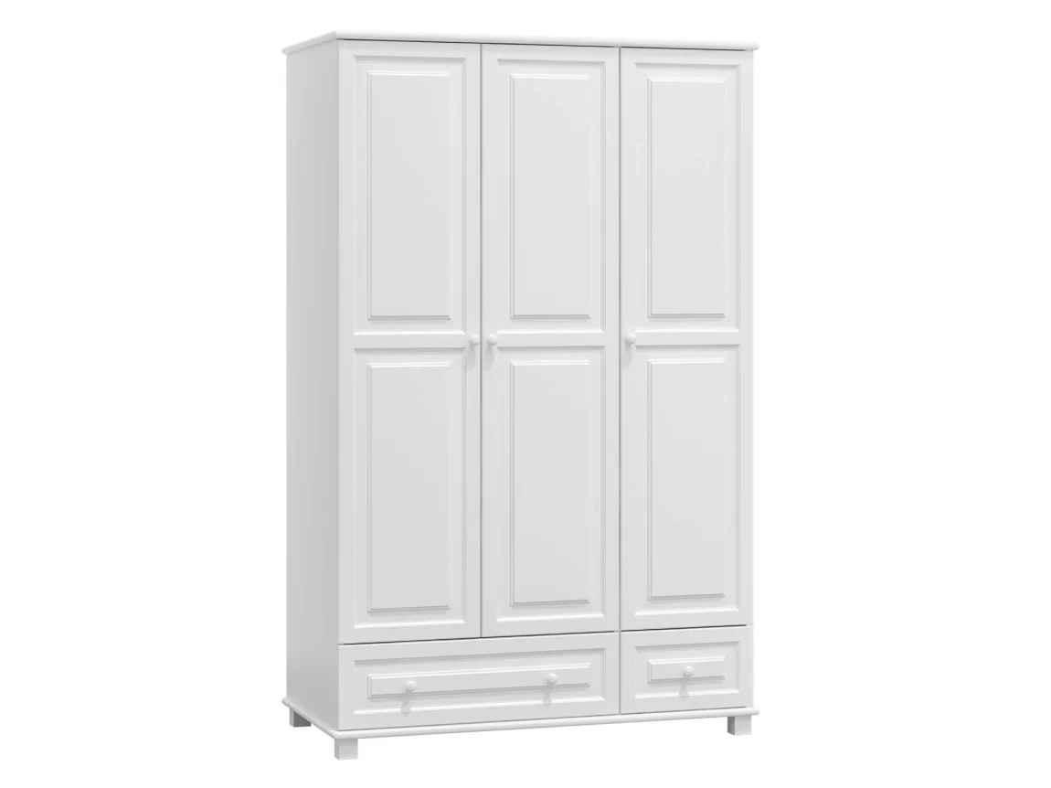 Skříň 3D BHAGIRA 1 je kombinovaná šatní skříň z masivu borovice s tloušťkou panelů 2,6 cm a povrchovou úpravou bílé moření, která v interiéru působí svěže a nadčasově. Rozměry jsou 190 cm na výšku, 133 cm na šířku a 60 cm na hloubku, dodáváno v demontu pro snadnou dopravu i montáž. Poskytuje praktické členění a dostatek úložného prostoru pro oblečení a doplňky. Světlý odstín zvyšuje optickou prostornost místnosti a díky odolnému povrchu bude skříň dlouho sloužit bez výrazných známek opotřebení.
