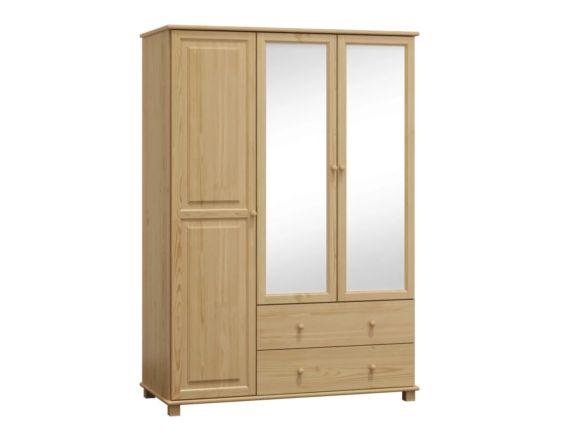 Skříň 3D BHAGIRA 6 se zrcadlem je vyrobená z masiv borovice o tloušťce 2,6 cm, která zajišťuje pevnost a dlouhou životnost. Rozměry dosahují výšky 190 cm, šířky 133 cm a hloubky 60 cm. Dodává se v demontu, což usnadňuje dopravu a následnou montáž. Zrcadlová část na dvířkách vizuálně zvětší prostor a zároveň ušetří čas při oblékání. Tato skříň nabídne praktický úložný prostor pro oblečení a doplňky a představuje spolehlivou volbu pro stylový a funkční interiér.