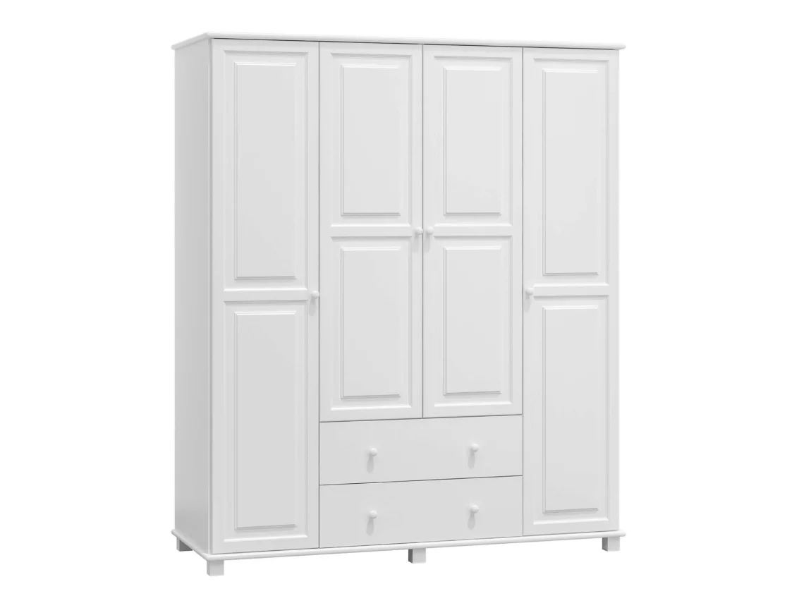Kombinovaná šatní skříň z masivního borového dřeva s tloušťkou 2,6 cm spojuje pevnost a dlouhou životnost. Povrch je opracovaný do bílé mořené úpravy, která vytváří světlý a nadčasový vzhled. Rozměry 190 x 180 x 60 cm poskytují dostatek úložného prostoru pro celou rodinu. Dodáváme v demontovaném stavu, což usnadňuje přepravu i montáž doma. Díky neutrálnímu bílemu provedení se skříň výborně hodí do různých interiérových stylů a snadno ji sladíte s dalším nábytkem.