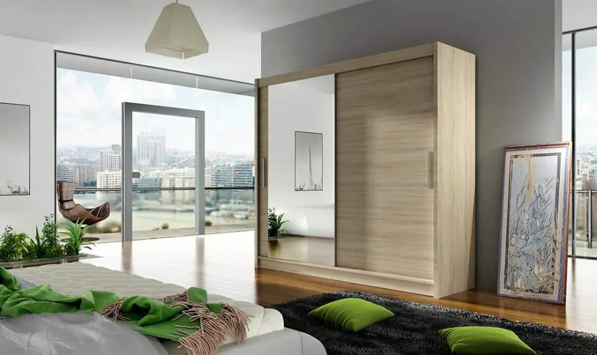 Skříň Berger VI s posuvnými dveřmi je vyrobena z kvalitního lamina o tloušťce 16 mm s ABS hranami, které zajišťují dlouhou životnost. Hliníkové vodicí lišty garantují plynulý a tichý chod dveří. Ve skříni je zabudované zrcadlo, které spolu s odrazem světla prostor opticky zvětší a prosvětlí místnost. K dispozici je ve čtyřech dekorech, včetně dubu sonoma. Díky promyšlenému uspořádání a rozměrům nabízí skříň dostatek úložného prostoru. Dodává se v demontu a v balení najdete montážní plán spolu s veškerým spojovacím materiálem; dekorace na fotografiích nejsou součástí ceny.