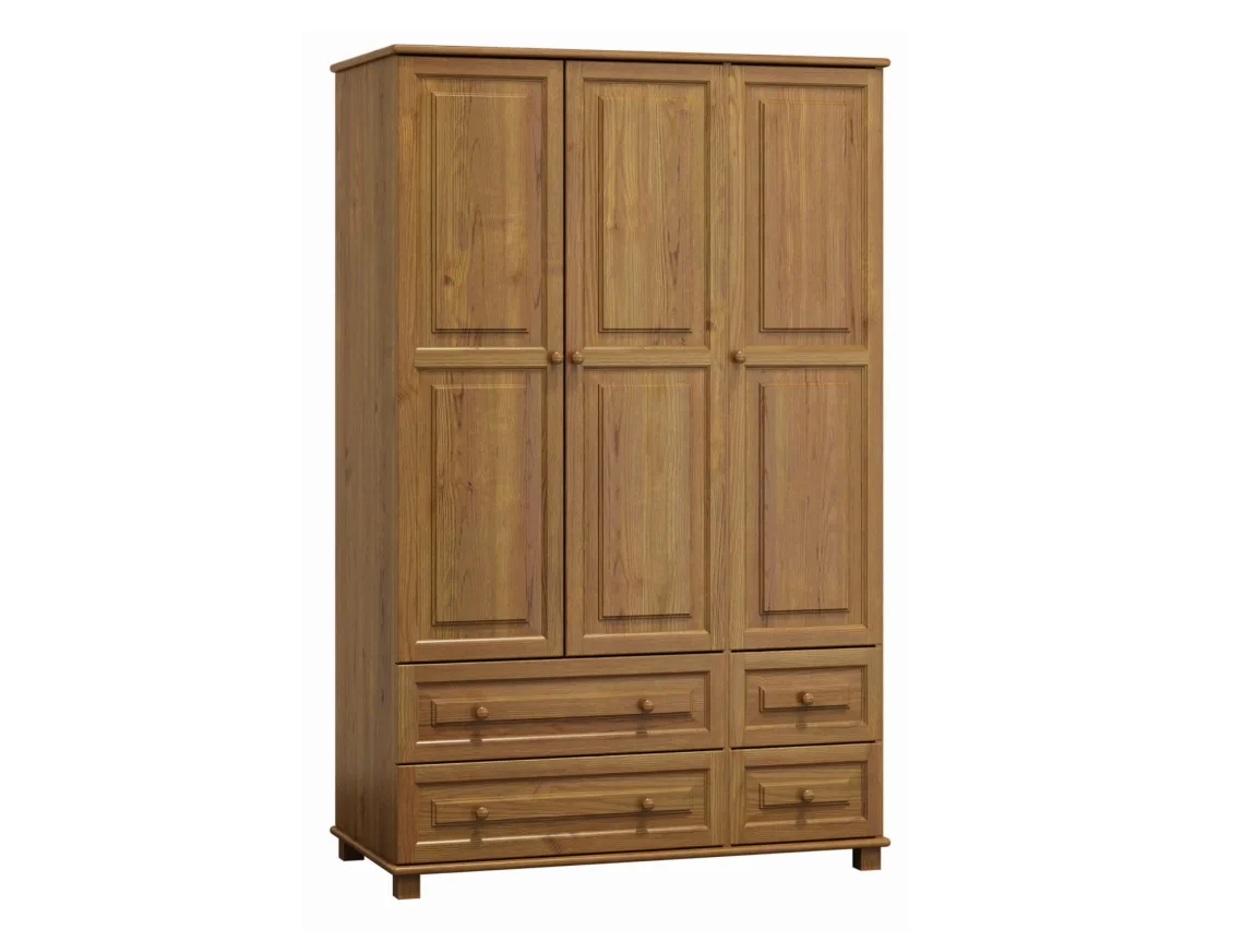 Kombinovaná šatní skříň vyrobená z masivní borovice s tloušťkou 2,6 cm nabízí robustní a dlouhotrvající úložný prostor. Povrch je ošetřen dubovým mořením, které dodává teplý přírodní tón a snadno se sladí s moderními i tradičními interiéry. Rozměry: výška 190 cm, šířka 120 cm, hloubka 60 cm. Dodáváno v demontu.