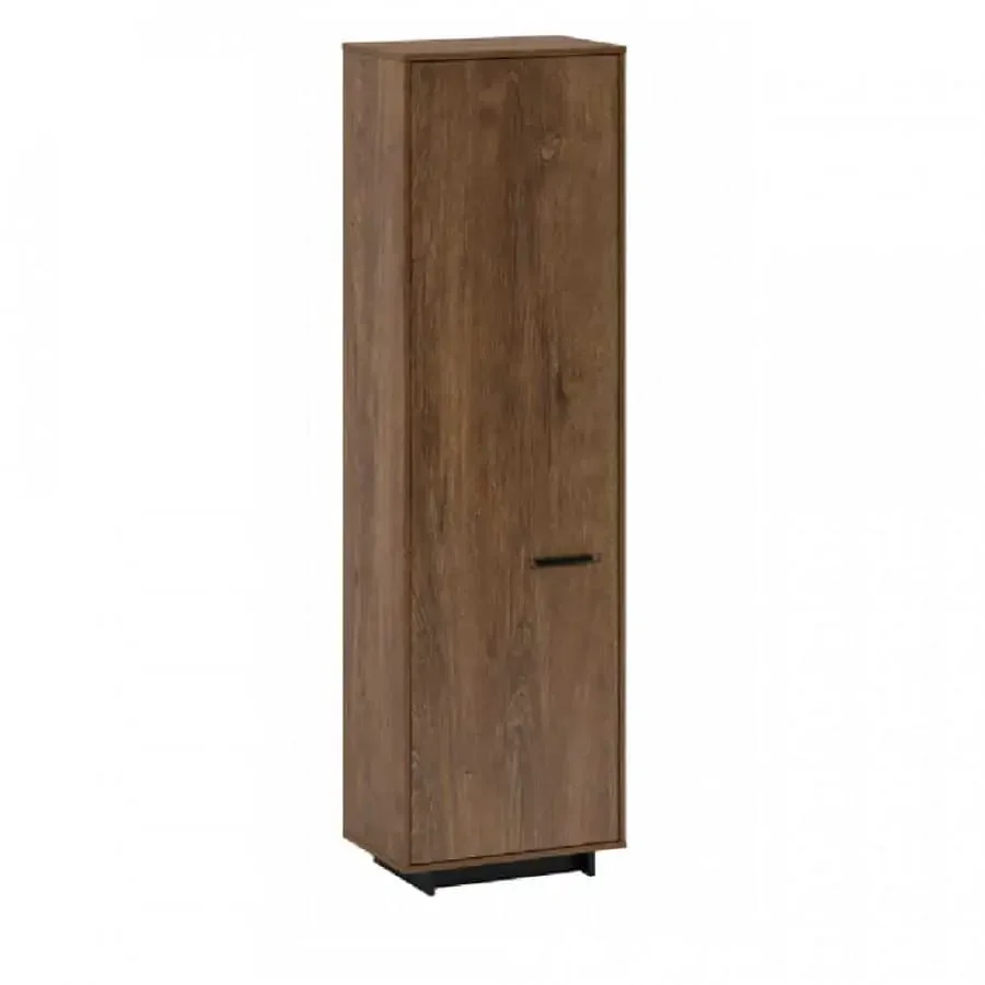5 polic ukrývá za dveřmi s kovovými úchyty, které otevírají do levé strany, a umožňuje přehledné třídění věcí. V barevném provedení dub Bolzano doplňuje černé akcenty na úchytkách a podstavci, čímž vzniká moderní kontrast vhodný do různých místností. Skříň je ideální do ložnice, obývacího pokoje, pracovne i studentského pokoje a díky tloušťce materiálu 16 mm působí bytelně. Přístupný prostor pod skříní měří 5 cm od podlahy, dodáváno je v demontu a lze ji snadno doplnit dalším nábytkem ze série Delis.