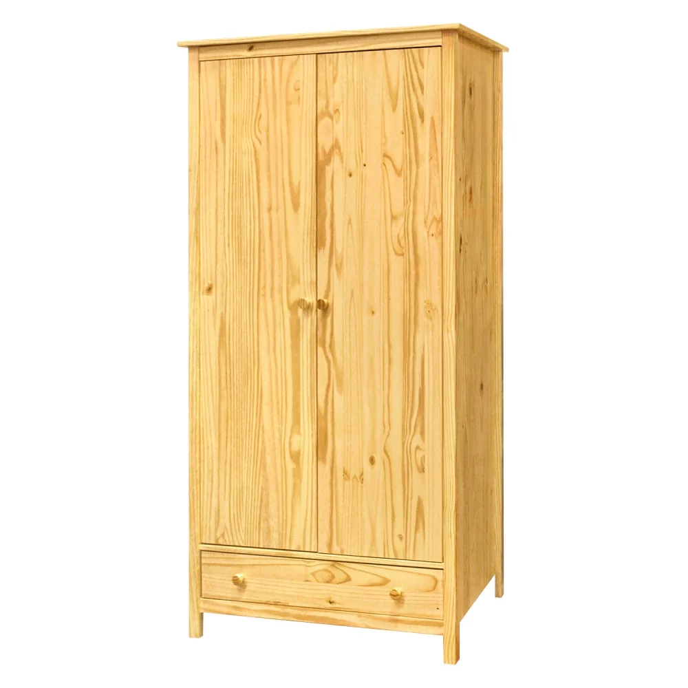 Skříň DWAYNE 2-dveřová je vyrobena z masivu borovice, což zajišťuje pevnou konstrukci a dlouhou životnost. Vnitřek nabízí 1 zásuvku na drobnosti s kovovými pojezdy, šatní tyč pro visící oděvy a police pro uložení doplňků. Díky svým rozměrům 100 × 190 × 58 cm poskytuje dostatek místa pro ukládání šatů i doplňků; povrch má přírodní borovicový odstín. Dodáváno v demontu. Skříň je vhodná jako spolehlivý úložný systém do ložnice či šatny, který se snadno integruje do různých interierů a díky masivní konstrukci překračuje běžné požadavky na zátěž.