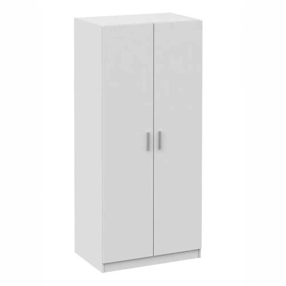 Skříň s dvojicí dveří nabízí čistý, moderní vzhled v bílé laminované úpravě a rozměry 90 × 60 × 200 cm. Materiál: DTD laminovaná deska, která zajišťuje pevnost a snadnou údržbu.