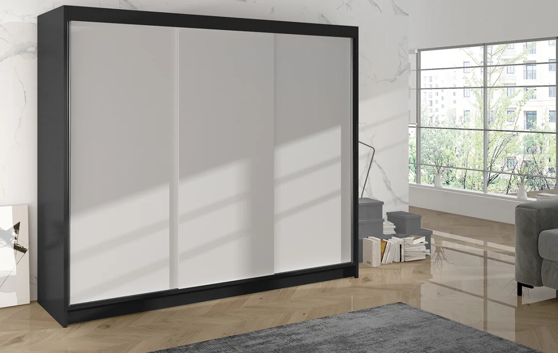 Skříň HARDY II v provedení černá/bílá přináší kombinaci stylu a praktičnosti do vaší ložnice či šatny. Je vyrobena z kvalitní laminované desky o tloušťce 16 mm s ABS hranou, což zaručuje dlouhou životnost a snadnou údržbu.