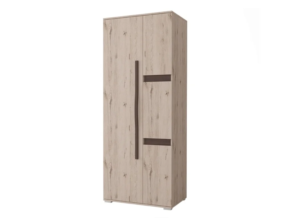 Praktická skříň s šatní tyčí a policemi pro efektivní organizaci oblečení. Dub kraft šedý a dub sonoma čokoládový dekor vytvářejí elegantní, moderní vzhled. Rozměry 80 x 203 x 52 cm poskytují dostatek prostoru pro šatní doplňky i vrstvy oděvů. Konstrukce z lamina o tloušťce 16 mm s ABS hranami zajišťuje dlouhou životnost a snadnou údržbu; úchyty jsou z PVC. Skříň je dodávána v demontu, montáž zabere jen krátce.