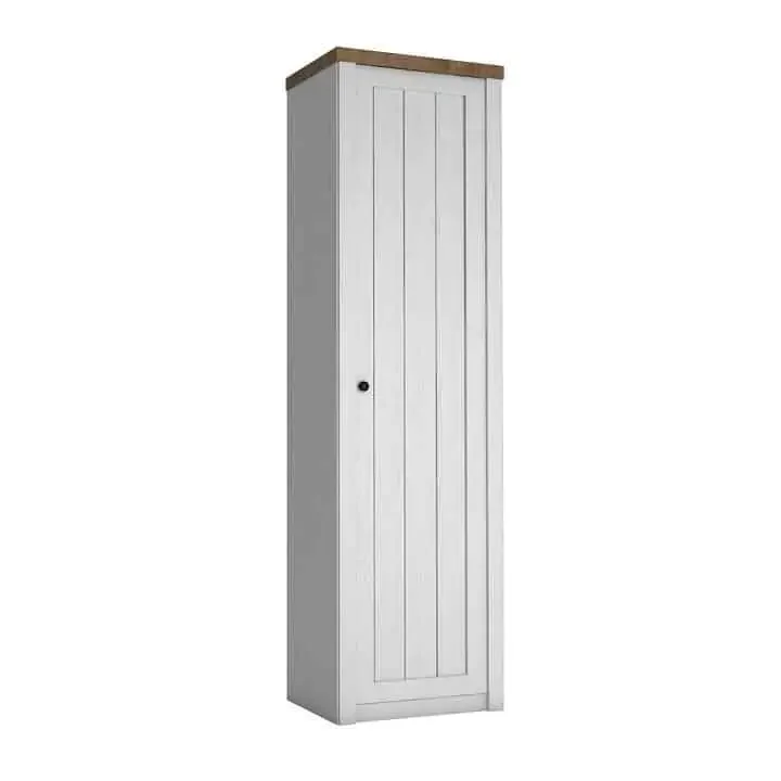 Moderní šatní skříň z lamina v Provance stylu přináší jemný a nadčasový vzhled do vašeho interiéru. Má plná dveře s klasickým otevíráním a originální úchytkou, která dodává kousku osobitý šarm. Dekor kombinuje vizuálně svěží sosnu Andersen s teplým dubem Lefkas, takže se skvěle hodí do obývacího pokoje i jídelny. Dodáváno v demontu, ale montáž je díky návodu jednoduchá a rychlá. Prostor, který skříň nabídne, funguje skvěle pro organizaci šatů a doplňků, a navíc díky kvalitní povrchové úpravě zůstane pěkná i při každodenním používání.