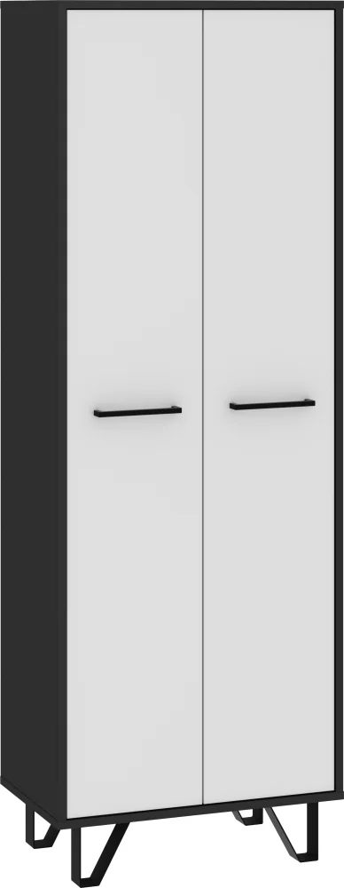 Skříň PRUDHOE 2D v provedení černý lesk s bílými prvky působí elegantně a hodí se do moderních interiérů. Rozměry 60 cm šířky, 170 cm výšky a 39 cm hloubky nabízejí dostatek místa pro oděvy, zatímco uvnitř najdete dvě poličky a šatní tyč, ukryté za dvěma dvířky.