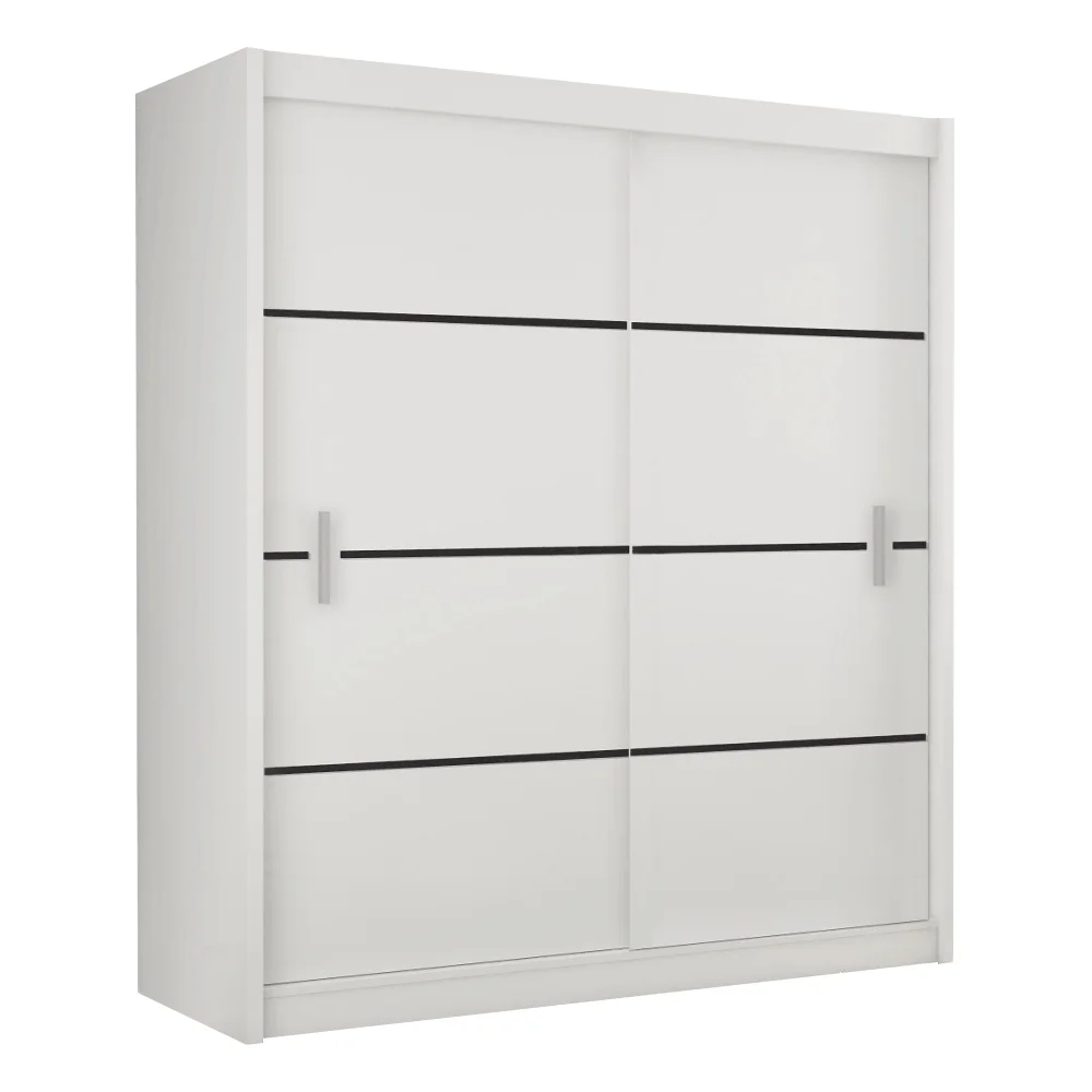 Prostorná skříň s posuvnými dveřmi nabízí spolehlivý úložný prostor pro oblečení a doplňky bez nutnosti hledat další organizéry. Je vyrobená z laminované DTD, což zajišťuje dlouhou životnost a stabilitu při každodenním používání.