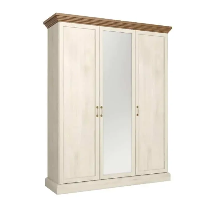 Elegantní systém ROYAL v anglickém stylu se hodí do obývacích pokojů, jídelen i ložnic a umožní vytvořit si sestavu přesně podle vašich představ. Třídveřová šatní skříň s jednou poličkou z kolekce ROYAL kombinuje nadčasový design s praktickou skladbou.