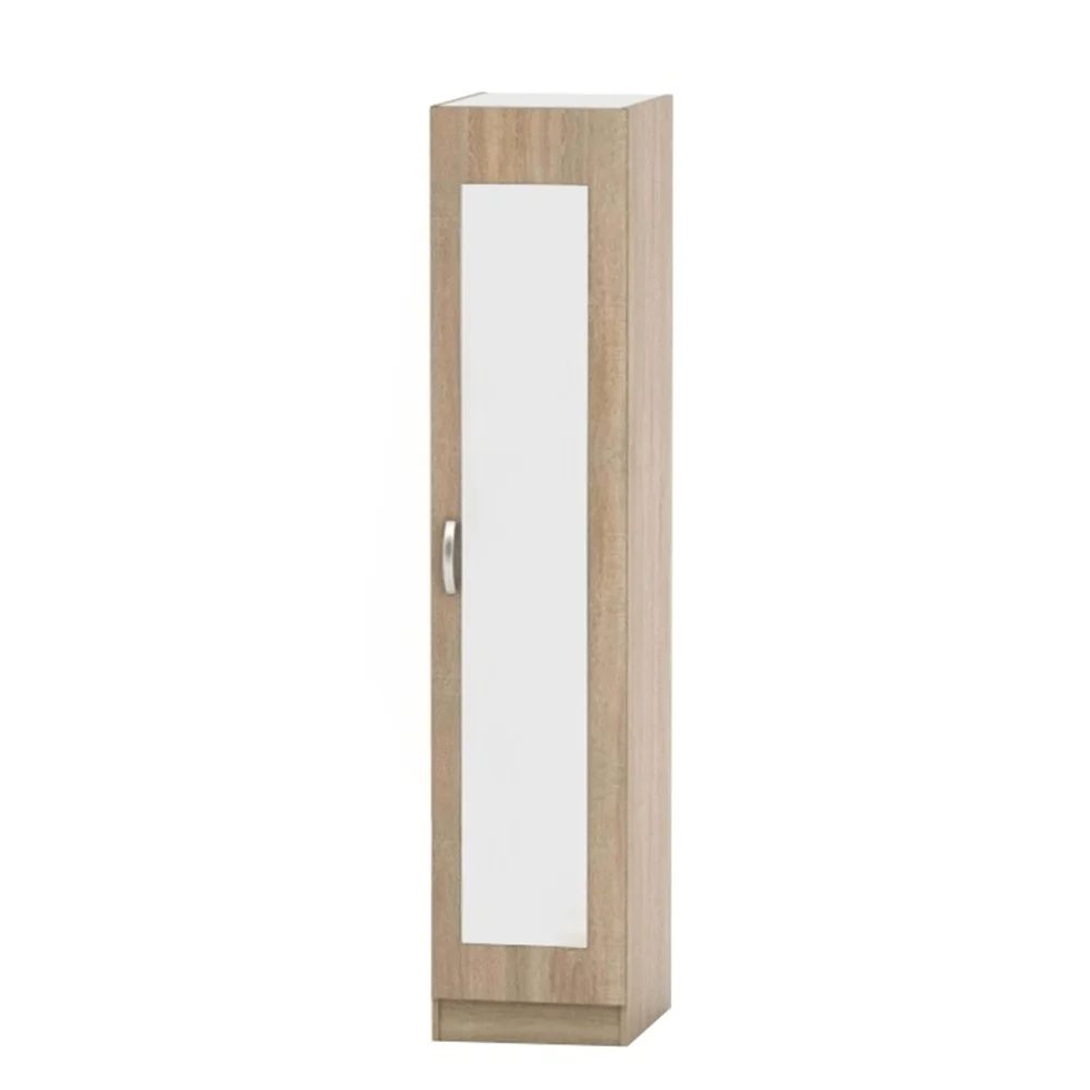 Skříň se vestavěným zrcadlem BETTY 2 v provedení dub sonoma nabízí praktické a stylové úložné řešení pro ložnici či šatnu. Vyráběná z laminované DTD desky je odolná vůči škrábnutí a snadná na údržbu. Rozměry 45 × 56,6 × 220 cm (Š × H × V) a tloušťka korpusu 16 mm zajišťují stabilitu i dlouhou životnost. Dodáváno v demontu, sestavení je rychlé a zvládne ho každý podle návodu. Díky neutrálnímu odstínu dub sonoma se skříň hodí k mnoha interiérům a pomůže vytvořit přehledné a uspořádané místo pro oblečení a doplňky.