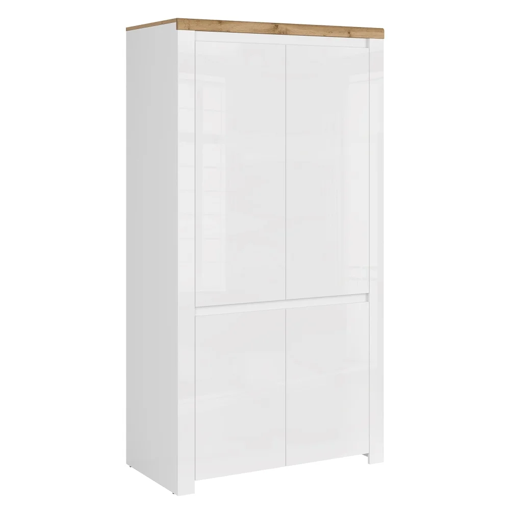 Skříň VENUSTA 4D – bílý lesk/dub wotan Skříně a skřínky
