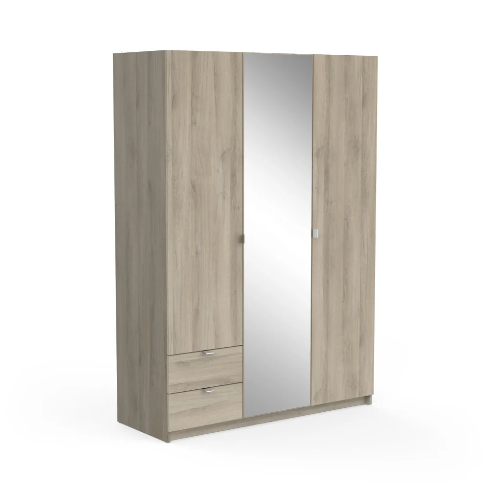 Kombinovaná skříň ZOLI 2 se zrcadlem v provedení dub kronberg kombinuje funkčnost a nadčasový vzhled do ložnic. Uvnitř nabídne dvě šatní tyče pro organizaci oděvů a tři police, z nichž dvě jsou nastavitelné na třech výškových úrovních a jedna je vyjímatelná pro flexibilní skladování.