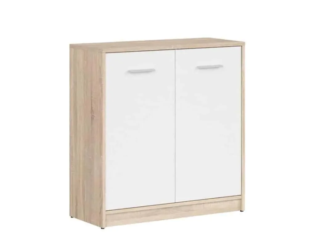 Skříňka NEPO PLUS KOM2D v provedení dub sonoma/bílá nabízí praktický úložný prostor do každé místnosti. Vyrobena je z kvalitního lamina, což zaručuje dlouhou životnost a snadnou údržbu. Je kompaktní, takže se hodí i do menších prostor – do chodby, ložnice či pracovny. Za dvířky se ukrývá policový systém s nosností až 4 kg na polici, který zvládne uspořádat dokumenty, drobnou elektroniku i osobní věci. Velké stříbrné úchytky z tvrzeného plastu zajišťují pohodlné ovládání a dodávají skříňce moderní vzhled. Skříňka patří k nábytkové řadě NEPO PLUS, se kterou snadno sladíte další kousky nábytku stejného stylu. Montáž je jednoduchá díky přiloženému návodu a dodáváme ji v demontu ve dvou balících. Vyniká univerzálním vzhledem, který se hodí do moderních i tradičních interiérů a usnadní uspořádání věcí v domácnosti.
