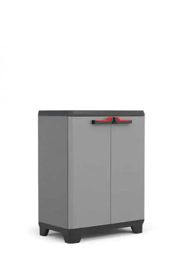 Skříňka STILO LOW je kompaktní a odolná plastová skříňka, která skvěle zapadne do dílny, šatny, na verandu i do garáže. Uvnitř nabízí police, které lze variabilně umístit a každá z nich unese až 15 kg zatížení, takže jednoduše uspořádáte nářadí, součástky i drobnosti. Montáž zabere jen kolem 10 minut a díky praktickému provedení ji zvládne každý během krátké chvíle. Skříňka má pevné očko pro připevnění visacího zámku a tím zvyšuje bezpečnost uložených předmětů. Vyrobena z odolného plastu, s výškou 90 cm, šířkou 68 cm a hloubkou 39 cm, váží přibližně 6 kg. Rozměry balení jsou 80×40×15 cm, baleno v kartonovém obalu. Šedá barva dodává praktický a univerzální vzhled, který se hodí do různých interiérů.
