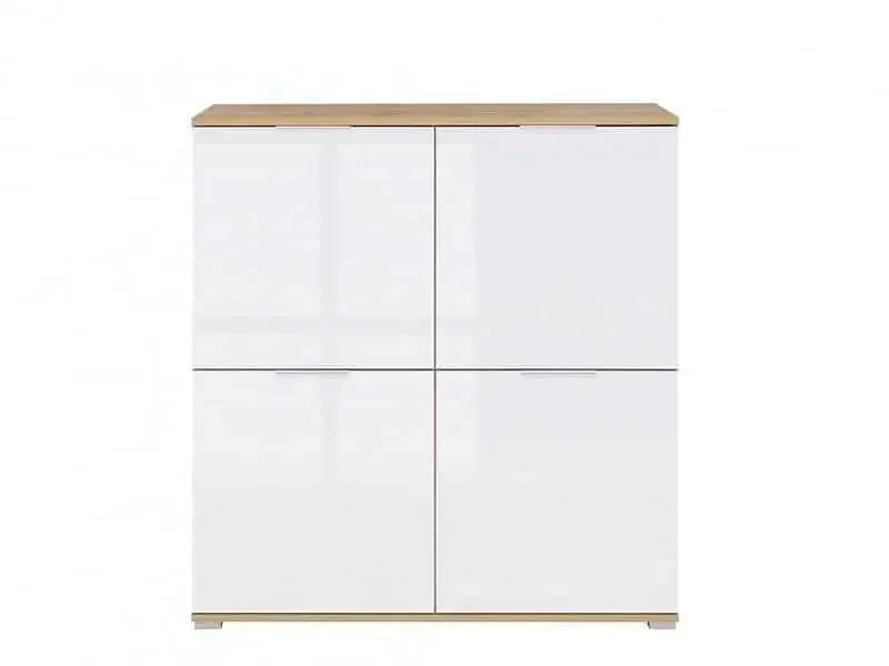 Elegantně zpracovaná skříňka Zele KOM4D nabízí čtyři police, které poskytnou dostatek místa pro oblečení i dokumenty. Její barevné provedení kombinuje dub wotan s lesklými bílými čely a dvířka působí moderně a svěže.