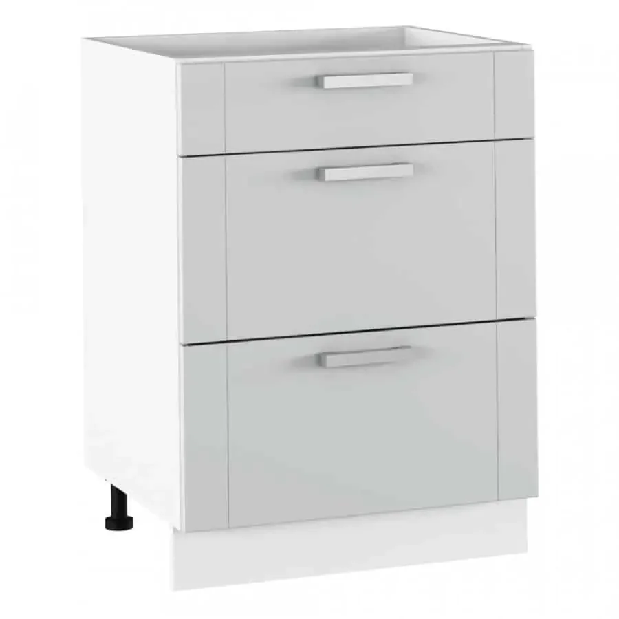 Spodní skříňka JULIA TYP 57 dodá kuchyni moderní vzhled díky kontrastu světlých dvířek a bílého korpusu. Korpus je z laminované DTD a dvířka z MDF, což zajišťuje pevnost a snadnou údržbu. Kovové úchyty v matném chromu dodávají eleganci a pohodlné ovládání. Pracovní deska na této skříňce není součástí balení a je nutné ji doobjednat; spodní lišta/sokl je dodávána v bílém provedení. Spodní skříňka JULIA TYP 57 je šuplíková a šuplíky otevírá kovový úchyt. Tloušťka materiálu činí 16 mm. Slovenský výrobek a dodává se v demontu. Díky praktickému uspořádání šuplíků oceníte pohodlnou organizaci nádobí a potravin, a skříňka se hodí do menších i větších kuchyní, kde nechybí styl a funkčnost.