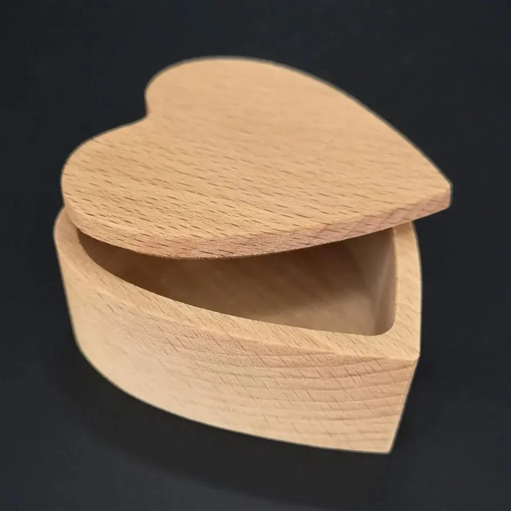 Elegantní srdíčková krabička vyrobena z pečlivě vybroušeného masivního bukového dřeva, ideální pro uložení drobností nebo jako originální dárek. Rozměry 8x3 cm umožňují praktické uschování například šperků či drobných suvenýrů.