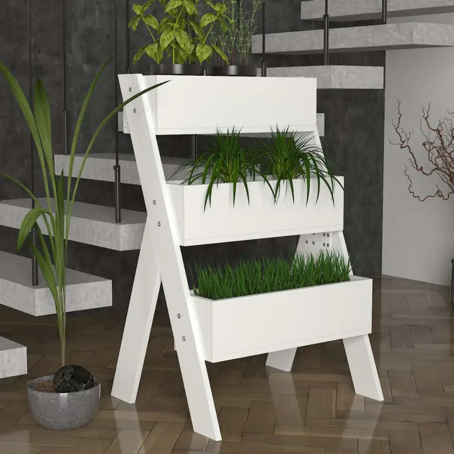 Oživte svůj obývací pokoj nebo předsíň s stojanem na květiny v chic skandinávském stylu, který dodá interiéru svěží a čistý vzhled. Stojan je vyroben z kvalitního LTD s tloušťkou 18 mm, což zajišťuje dlouhou životnost a dobrou stabilitu. Jeho bílá povrchová úprava se hodí prakticky do každého prostoru a díky vrstvenému regálku můžete rostliny vystavit na různých úrovních. Rozměry 63.6 x 97.7 x 48.7 cm poskytují dostatek prostoru pro různé druhy květin. Dodáváme v demontu, montáž zvládnete sami během pár minut. Náš tip: díky čistým liniím a praktickému uspořádání se stojan na květiny stane jemným, avšak výrazným prvkem vašeho interiéru a zároveň šetří místo.
