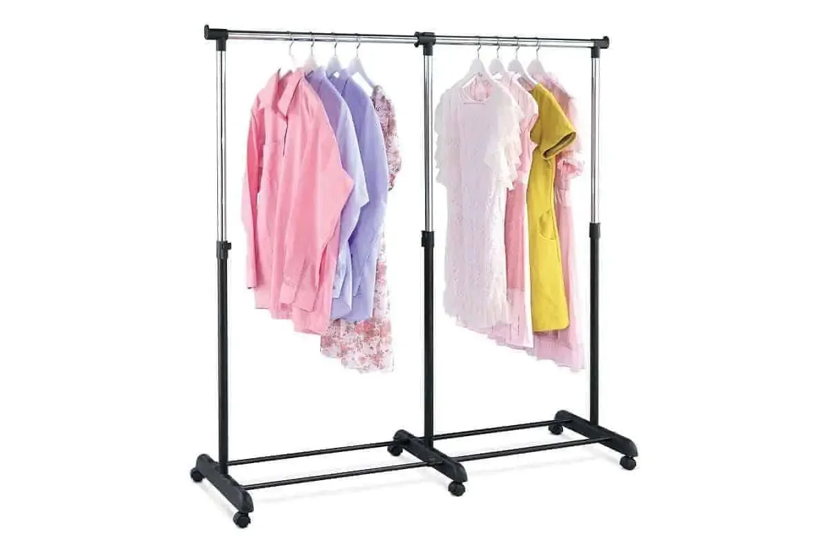 Praktický stojan na šaty s rozšiřitelnou šířkou od 94 cm až po 160 cm a výškovým nastavením 94–167 cm. Snadná regulace šířky i výšky umožní pohodlné zavěšení různých kusů oblečení. Využijete jej v domácím šatníku, ale i v prodejnách či showroomech pro přehlednou organizaci oděvů. Dodáváno v demontu.
