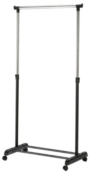 Stojan na šaty INDRAMAYU v černém provedení kombinuje stabilní konstrukci s praktickým využitím. S nastavitelnou výškou si snadno upravíte délku ramen podle potřeby a prostoru. Konstrukce kombinuje chromovaný kov a plast, což zajišťuje lehkou údržbu a dlouhou životnost.