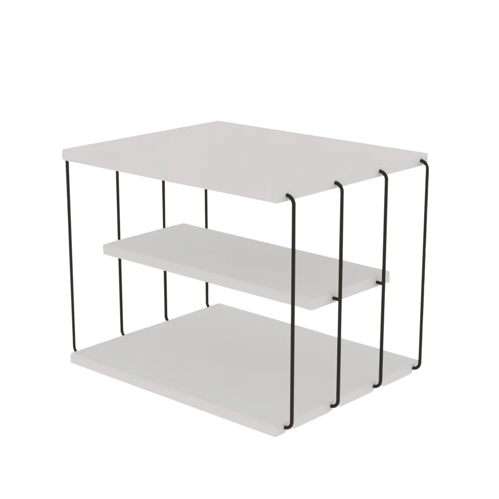 Praktický boční stolek BENDER kombinuje bílé a černé provedení s odkládací plochou, která se hodí do obýváku i pracovny. Jeho kovový rám zajišťuje dlouhou životnost a stabilitu, zatímco plocha z 18 mm silné melaminované dřevotřísky je odolná vůči poškrábání a snadno se čistí.