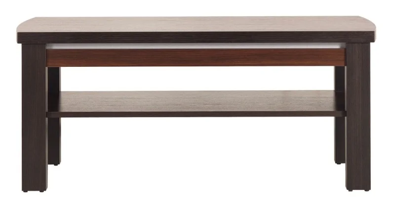 Stylový konferenční stolek s odkládací plochou, který skvěle doladí moderní obývací pokoj. Jeho minimalistický design s hladkými liniemi dodává prostoru svěží a současný dojem. Kombinace tmavého ořechu a dubu miláno vytváří nadčasovou kombinaci, která se hodí k různým stylům nábytku.