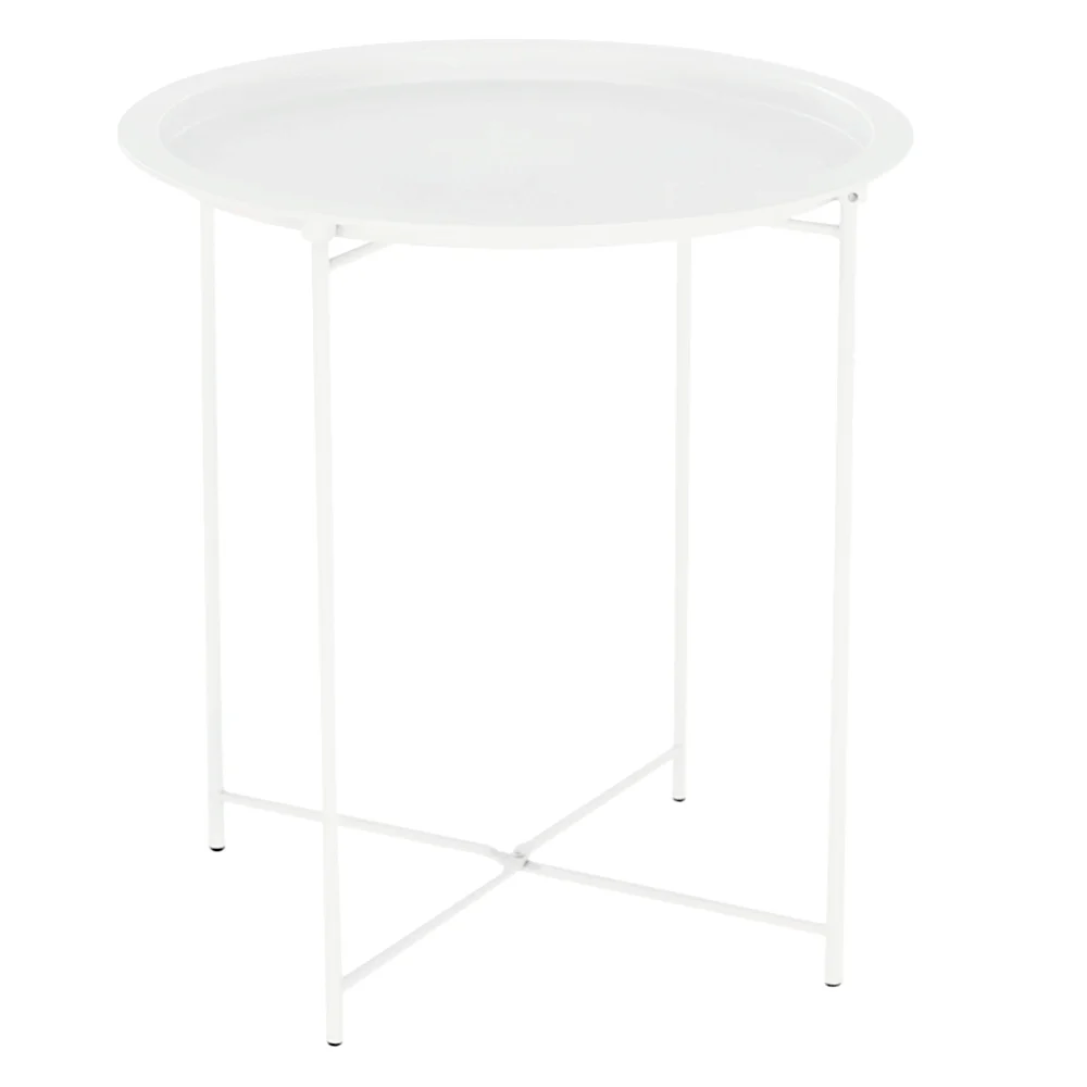 Praktický skládací stolek RADOMI v bílé barvě se pyšní pevnou kovovou konstrukcí, která nese odnímatelný vrchní tác určený pro servírování kávy či pochutin. Odnímatelný tác umožňuje snadné servírování i rychlé uklizení povrchu. Díky svému retro vzhledu působí jedinečně a dodává interiéru šarm i atmosféru staré školy. Rozměry 47 x 50,2 x 47 cm a nosnost 8 kg z něj činí praktický doplněk pro domácí večírky i každodenní použití. Skvělý jako multifunkční pomocník, který lze snadno složit a opět rozložit podle potřeby. Dodáváno v demontu a se zárukou 24 měsíců.