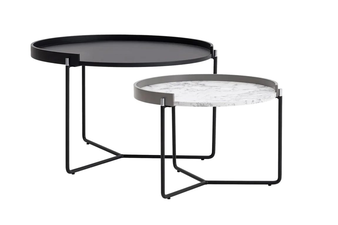 Desky jsou vyrobené z 100% MDF a podpírají je kovové nohy, díky čemuž jsou stolky pevné a stabilní, zatímco jejich antracitová barva dodává interiéru nadčasovou eleganci. Můžete je využít samostatně i jako součást jednoho celku; díky možnosti snadného skládání a rozmístění získáte prostor přesně podle potřeby. Rozměry stolku 1: šířka 80 cm, výška 51 cm, hloubka 80 cm; rozměry stolku 2: šířka 60 cm, výška 41 cm, hloubka 60 cm. Tato sada skvěle doplní každý byt a je ideální volbou pro každodenní použití – od odkládání nápojů po vystavení dekorací, a díky použitým materiálům vydrží dlouho.