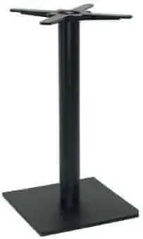Stolová podnož BD005 je centrální litinová konstrukce v černé barvě s hranatou čtvercovou základnou. Průměr trubky činí 76 mm a povrch je v odstínu černé RAL 9005, což zajišťuje dlouhou odolnost a stylový vzhled.