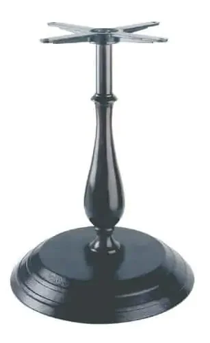Provedení: Černá centrální litinová stolová podnož s kulatou základnou je určena pro upevnění desky stolu. Barva podnože odpovídá odstínu RAL 9005, což zajišťuje nadčasový vzhled. Pro interiérové použití je tato podnož vhodná i v barové variantě. Podnož je navržena pro prostory s vyšším zatížením, jako jsou restaurace, jídelny, kavárny, bary a čekárny. K dispozici je i varianta v různých barevných odstínech dle vzorníku RAL. Robustní litinová konstrukce garantuje dlouhou životnost i při každodenním provozu. Díky široké nabídce barevných odstínů ji snadno sladíte s interiérem a stylem stolů.