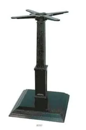 Provedení: Stolová kovová litinová podnož s čtvercovou základnou a ozdobnou hranatou trubkou poskytuje pevnou litinovou konstrukci pro stabilní oporu stolové desky. Podstavec má 40 × 40 cm a je lakován černou barvou RAL 9005. Doporučený maximální rozměr stolové desky je 80 × 80 cm. Podnož je nabízena v nízké jídelní variantě. Je vhodná pro prostory s vysokou zátěží, jako jsou restaurace, jídelny, kavárny, bary a čekárny. K dispozici je moderní lakovaná úprava podle vzorníku RAL. Díky nadčasovému designu se hodí do různých interiérů a snadno doplní vzhled každé jídelny.