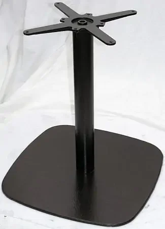Černá centrální litinová stolová podnož s čtvercovou zaoblenou základnou, provedená v barvě RAL 9005, dodá stolu bytelný a nadčasový vzhled. Je určena pro vnitřní použití a díky robustní konstrukci nabízí vysokou stabilitu i při náročném provozu, což ocení zejména restaurační a kavárenské provozy. K dispozici je i jídelní provedení BH002. Podnož je vhodná pro prostory se zvýšenou zátěží – restaurace, jídelny, kavárny, bary a podobně. Nabízíme několik variant materiálu: CC = chromovaná trubka + černá litinová základna; INOX MAT = nerezová trubka i základna v matném provedení; INOX LESK = nerezová trubka i základna v lesku; INOX/CL MAT = dřevěná trubka + nerezová základna (v matu); INOX/CL LESK = dřevěná trubka + nerezová základna (v lesku). Všechny podnože mají montážní kříž pro stolové desky a jsou dodávány včetně vymezovacích patek.