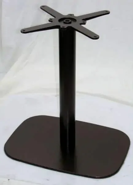 Konstrukce této stolové podnože BH004 je centrální litinová s obdélníkovou základnou, která zajišťuje pevnou a stabilní podporu stolů. Barva je černá podle RAL 9005, vhodná pro interiérové použití a designově ladící s moderními prostory. Tato podnož je konstruována pro provozy s vyšší zátěží, jako jsou restaurace, jídelny, kavárny, bary či čekárny. Nabízíme několik variant materiálu: CC – chromovaná trubka a litinová základna v matném provedení; INOX MAT – nerezová trubka i základna s matným povrchem; INOX LESK – nerezová trubka i základna v lesku; INOX/CL MAT a INOX/CL LESK – varianty s kombinací materiálů (dřevěná trubka a nerezová základna, s matným či lesklým povrchem). Doplňkově lze podnož upravit moderní lakovanou úpravou v barvách podle vzorníku RAL, čímž snadno sladíte zařízení s vaším interiérem.