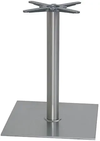 Černá centrální litinová podnož pro stoly s pevnou čtvercovou základnou nabízí stabilní podporu a nadčasový vzhled. Základní barva odpovídá černému odstínu RAL 9005 a je určena pro vnitřní prostředí. K dispozici je i jídelní varianta BI003, takže lze vybrat provedení podle potřeby. Je vhodná pro prostory s vyšším zatížením, jako jsou restaurace, kavárny, jídelny či bary. Pro výběr materiálu nabízíme několik variant: CC – chromovaná trubka s černou litinovou základnou; TC – kompletní chrom (trubka i krycí plech); INOX MAT – matná nerezová trubka i základna; INOX LESK – lesklá nerezová trubka i základna. Všechny podnože jsou dodávány se spojovacím křížem pro upevnění stolní desky a vymezovacími patkami.