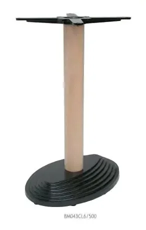 Dostupné varianty materiálu: CC – chromovaná trubka + černá litinová základna; CL – dřevěná trubka + černá litinová základna. Všechny podnože jsou dodávány s křížovým uchycením pro stolovou desku a vymezovacími paticemi; varianta CL je vidět na fotografii. Snadná montáž a spolehlivá konstrukce zaručují dlouhodobou stabilitu i při časté výměně desek.