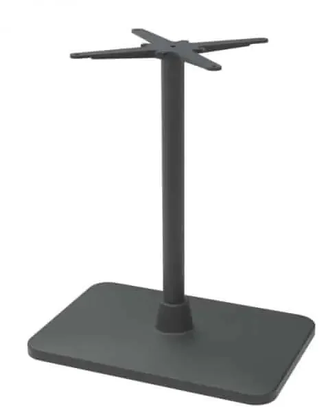 Podnož stolová CD002 představuje robustní centrální litinová podnož s obdélníkovou zaoblenou základnou, která zajišťuje stabilitu stolové desky. Základní odstín je černý, RAL 9005; na vyžádání lze dodat i jiné barvy za příplatek. Podnož je určena pro interiéry s vyšší zátěží, například v restauracích, jídelnách, kavárnách a barech, a zaručuje dlouhou životnost při častém používání. Součástí balení je upevňovací kříž pro desku a vymezovací patky, které umožňují přesné nastavení výšky a stability stolu. Dopřejte si nadčasový vzhled a jednoduchou instalaci – tato podnož se hodí k široké škále designů.