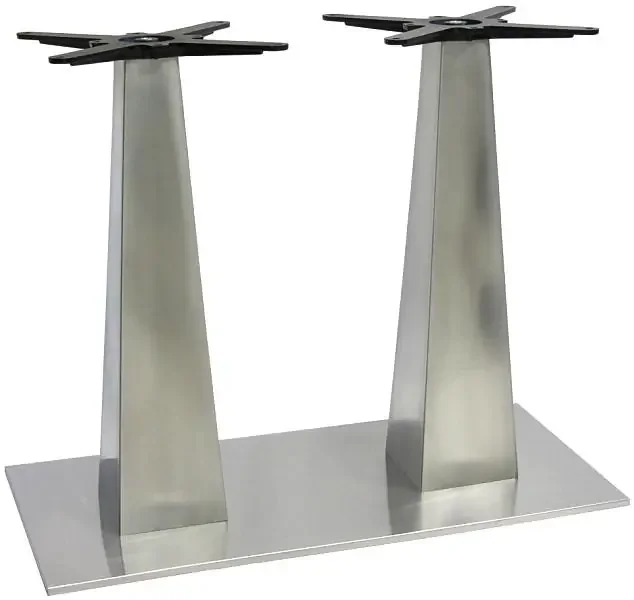 Stolová podnož CQ003INOX poskytuje pevnou, hranatou základnu pro stabilní podporu stolu. V základním provedení je vyrobena z matné nerezové oceli; za příplatek lze objednat také lesklé provedení pro modernější vzhled. Je určena pro provozy s vyšším zatížením, jako jsou restaurace, jídelny, kavárny a bary, kde se klade důraz na odolnost a dlouhou životnost. Součástí balení je instalační kříž pro upevnění desky a vymezovací patky, které umožňují přesné nastavení výšky a vyrovnání stolů. Díky snadné montáži a univerzální kompatibilitě desek se podnož hodí do různých interiérů a stylů a zaručuje rychlou adaptaci na změny vybavení.