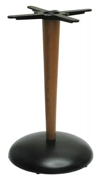 Stolová podnož CV001CL27 představuje robustní řešení pro interiéry: centrální litinová podnož s dřevěnou trubkou a kulatou základnou v elegantní černé barvě (RAL 9005). Vyráběna pro provozy s vyšší zátěží, jako jsou restaurace, jídelny, kavárny a bary, a tak zaručuje dlouhou životnost a stabilitu. Podnož je dodávána s instalačním křížem pro upevnění stolní desky a vymezovacími patkami, které usnadňují přesné vyrovnání desky. Určena pro vnitřní použití, její design se hodí do moderních i tradičně zařízených prostorů a zajišťuje tichý a bezpečný chod nábytku.
