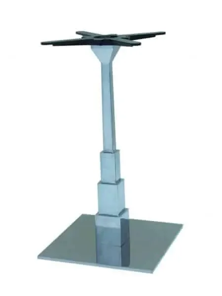 Tato centrální stolová podnož s čtvercovou základnou kombinuje leštěný nerez a hliník pro nadčasový vzhled a dlouhou životnost. Průměr trubky činí 95 × 95 mm, což zajišťuje pevnou a stabilní konstrukci.