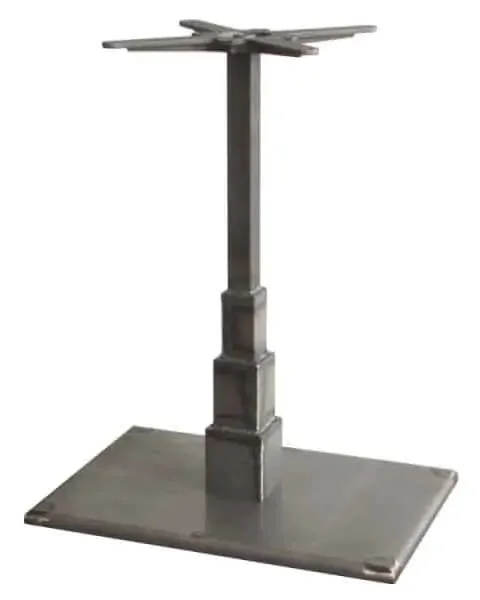 Stolová podnož FE006 GOLD představuje robustní centrální podpěru pro jídelní stoly, vyrobenou z oceli s obdélníkovou základnou a trubkami o rozměrech 95 × 95 mm. Je určena pro interiérové použití a zvládá vysoké zatížení v provozech jako restaurace, kavárny či čekárny. Podnož je nabízena ve třech variantách: XAL (leštěný nerez a hliník), FER (ocel) a GOLD (zlatá deska). Všechny varianty jsou dodávané s montážním křížem pro upevnění stolové desky a vymezovacími paticemi. Na ilustraci je zobrazena varianta FER.