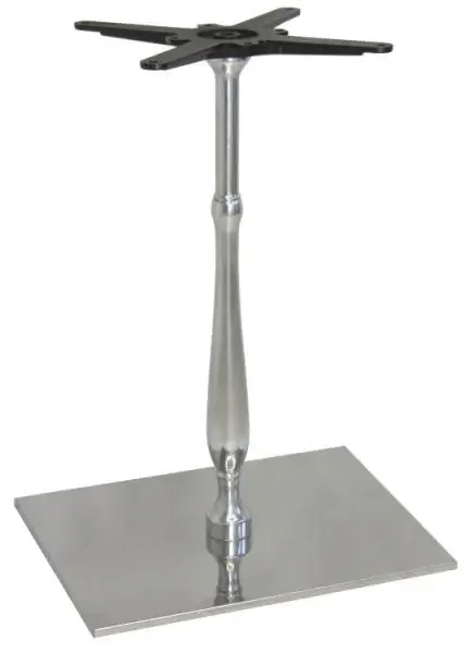 Stolová podnož Rút má pevnou konstrukci s obdélníkovou spodní deskou. Je vyrobena z leštěného nerezu a hliníku, což zajišťuje dlouhou životnost a čistý vzhled. Je určena pro provozy s vysokou zátěží, jako jsou restaurace, jídelny, kavárny a bary.